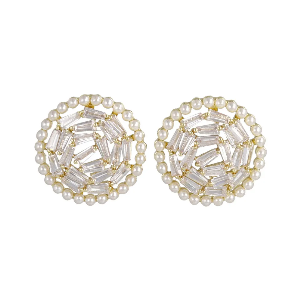 Material: cubic zirconia, brass, faux pearl, stainless steel earring post