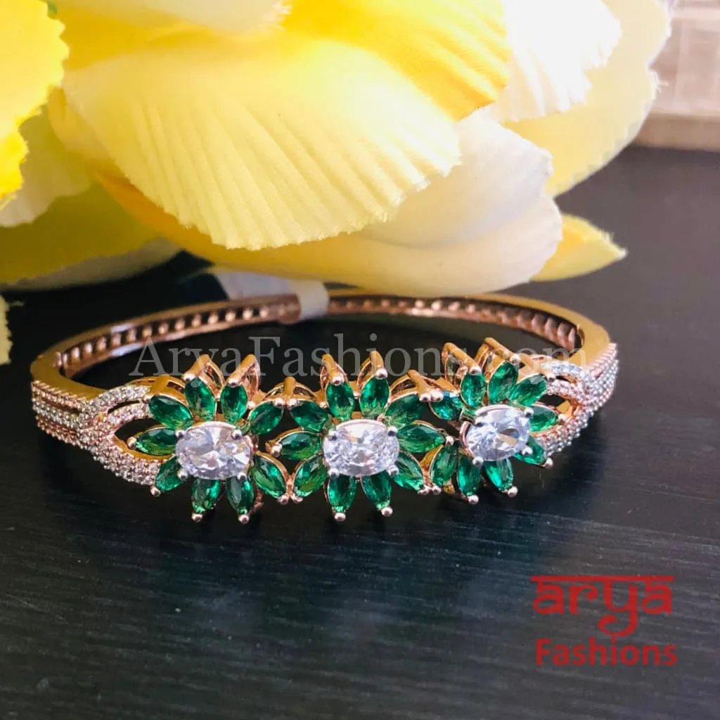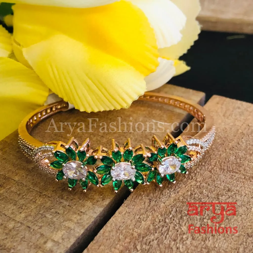 Tyra Rose Gold Emerald Green Crystals Flower Bracelet